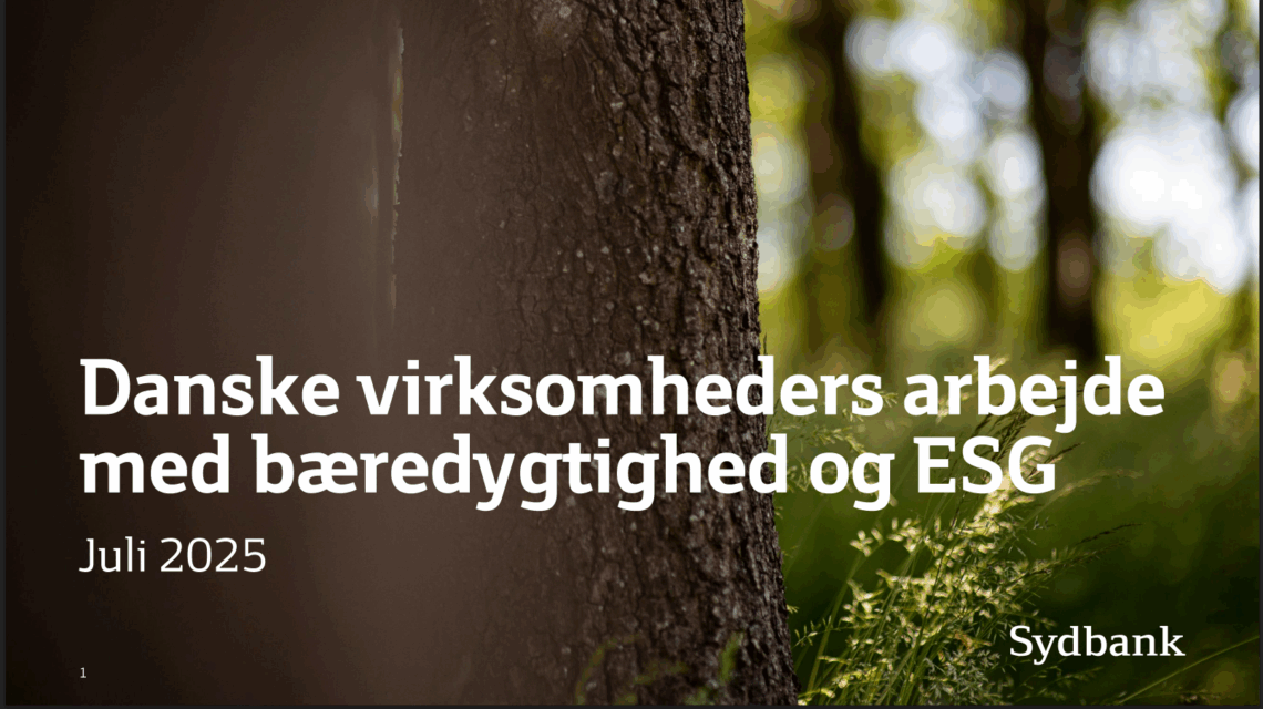 En ny undersøgelse fra Sydbank viser, at danske virksomheder i stigende grad prioriterer bæredygtighed og ESG (Environmental, Social, Governance). Mere end halvdelen arbejder aktivt med bæredygtighed, og mange ser det som en konkurrencefordel – både i forhold til kunder og rekruttering.